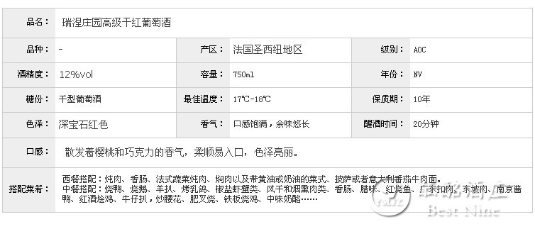 原瓶进口红酒批发 法国AOC红酒瑞涅庄园高级干红葡萄酒 促销优惠