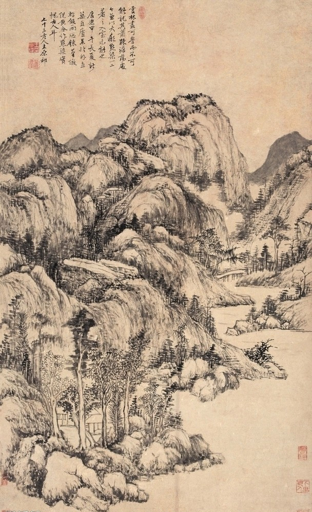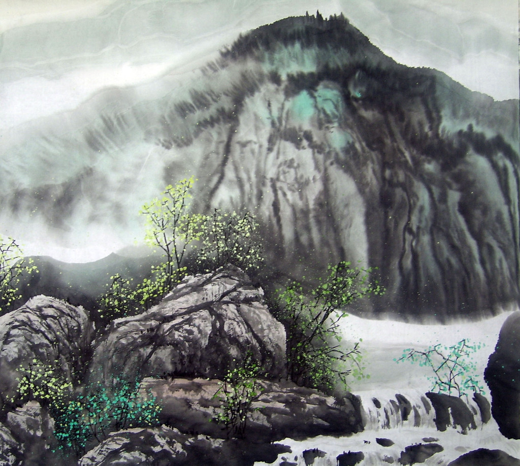 定制国画水墨画玻璃屏风 现代简约夹丝夹绢玻璃双面玻璃山水画