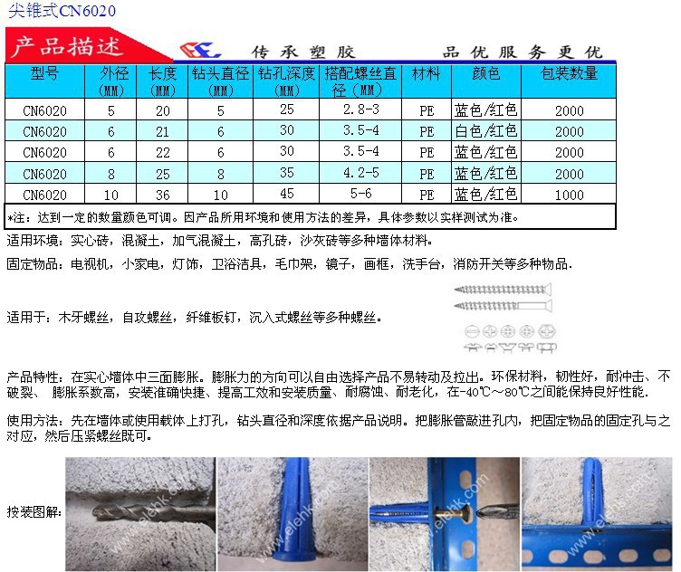 多规格供选 塑料膨胀胶塞 膨胀墙塞 环保尼龙型塑料棚套管