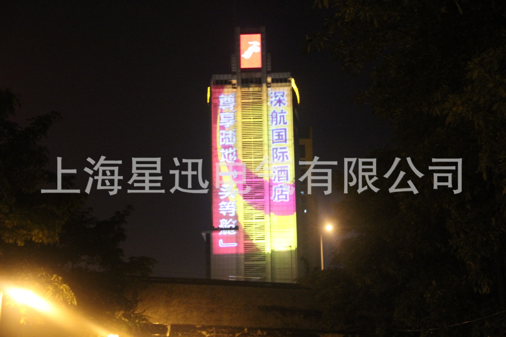 楼体墙面广告巨幅投影、户外广告制作,PG投影机