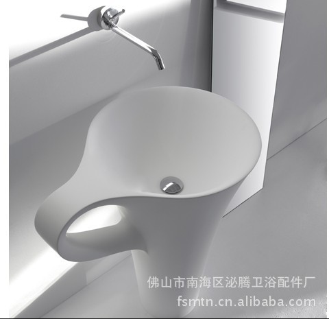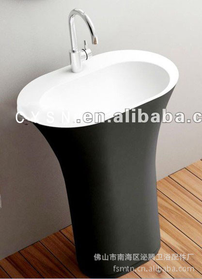 来图订制落地盆 立柱盆时尚独立式洗面盆 黑色胶衣椭圆形盆
