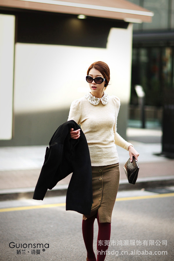 2012秋装新款 娇兰诗蔓女装GW52276亮片娃娃领针织小衫