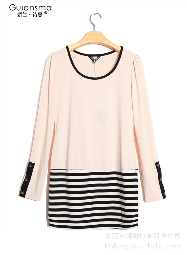 2012秋装新款 娇兰诗蔓GW52220时尚休闲条纹拼接针织衫