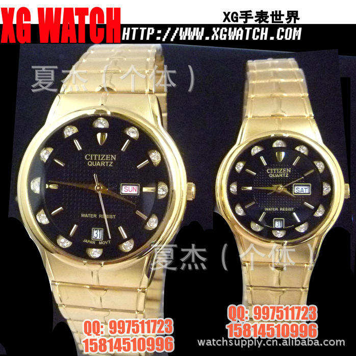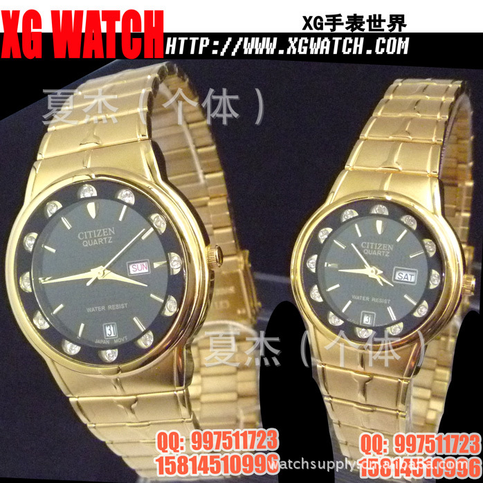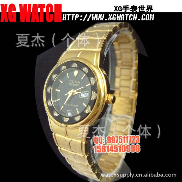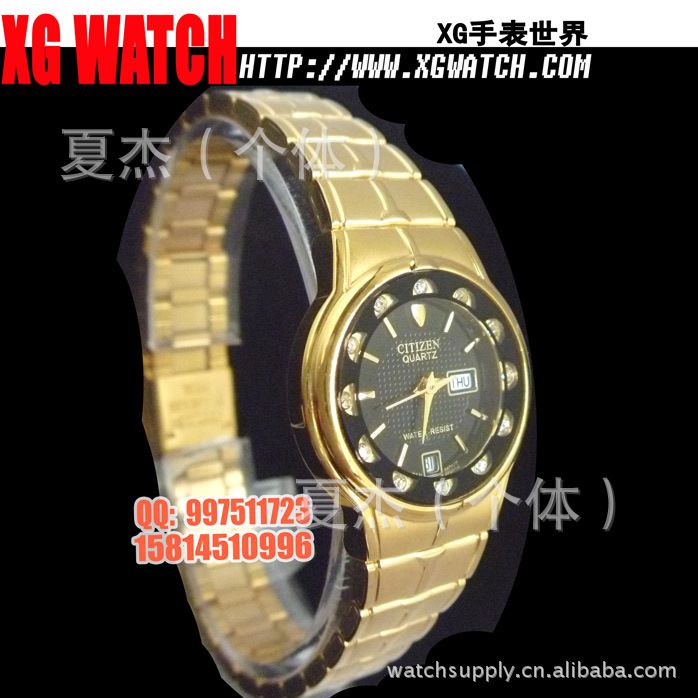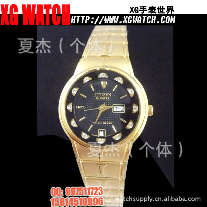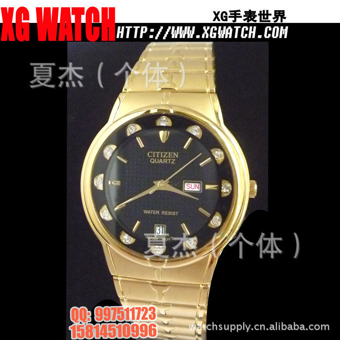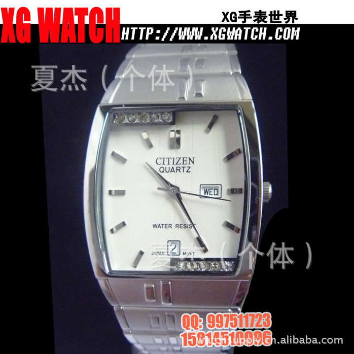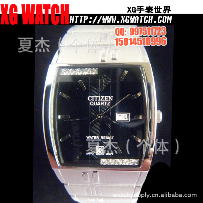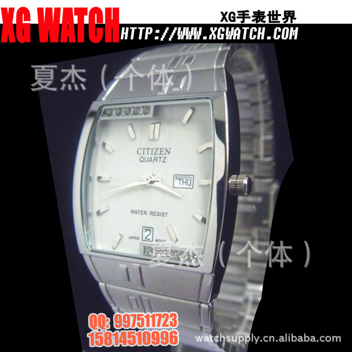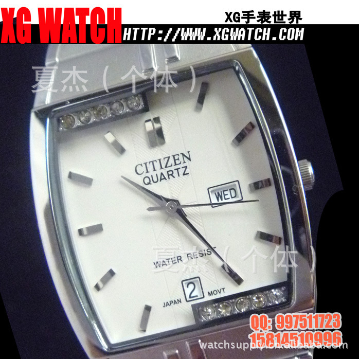 手表批发西铁城手表男表方形双日历开放钢带男士手表日本机芯