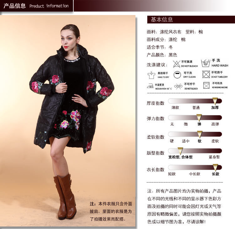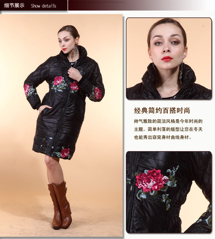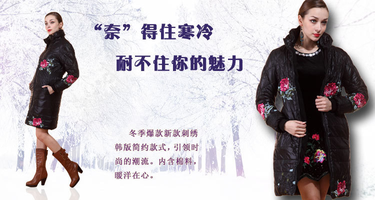 热销中老年女装棉衣冬装刺绣花欧美长款长袖妈妈装羽绒服直销0004