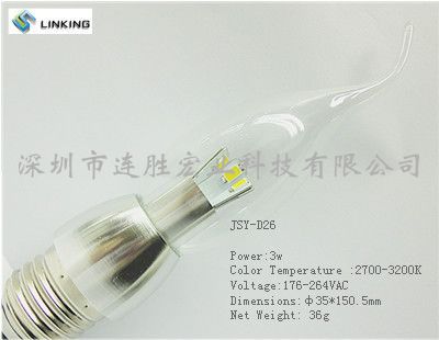 美凌水晶灯led灯泡节能蜡烛灯拉尾灯泡 小螺口E14尖泡光源超亮