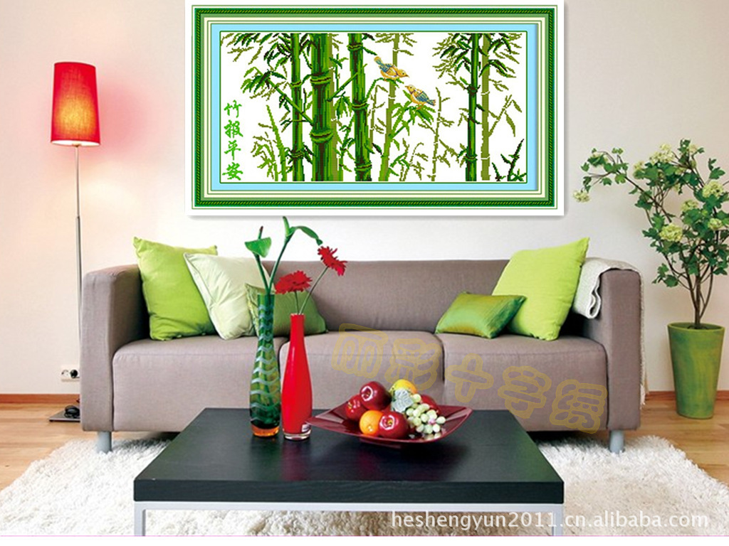 2012新款度100%印在布上(竹报平安半景)十字绣套件