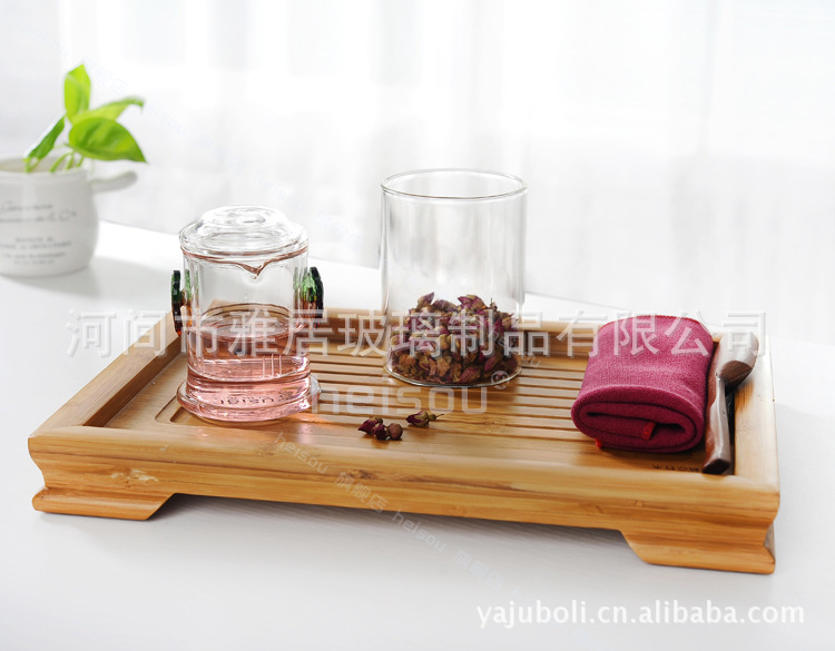 新款玻璃茶具红茶泡茶器带过滤花茶冲茶器350ml 玻璃隔茶三件杯