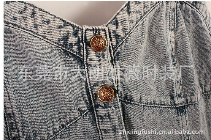 定制加工外贸复古欧风雪花性感街拍可爱修身薄型吊带牛仔连体裙裤