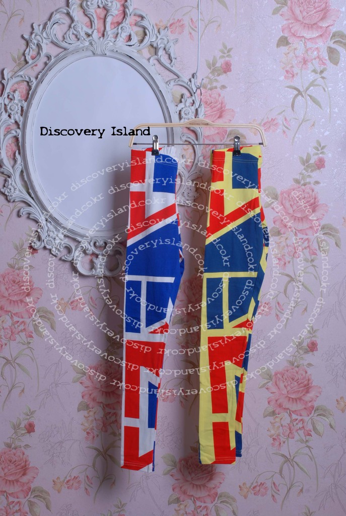 Discoveryisland 韩国原单 不规则英国国旗 显瘦微弹 女装打底裤