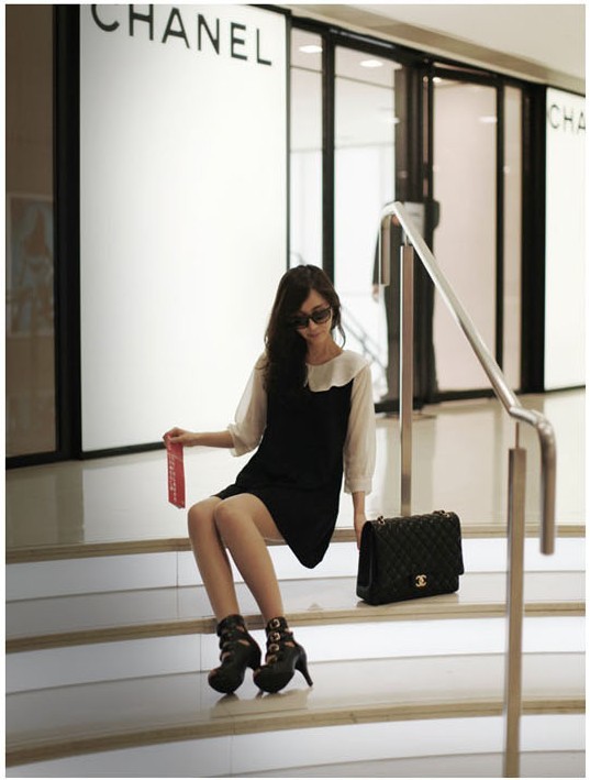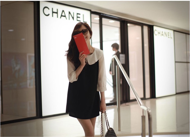 13春季新品雪纺连衣裙 甜美娃娃领雪纺连衣裙 韩版中袖雪纺连衣裙