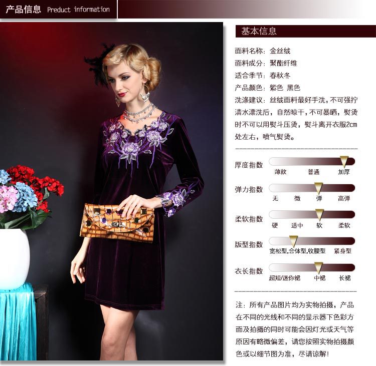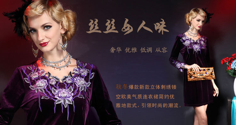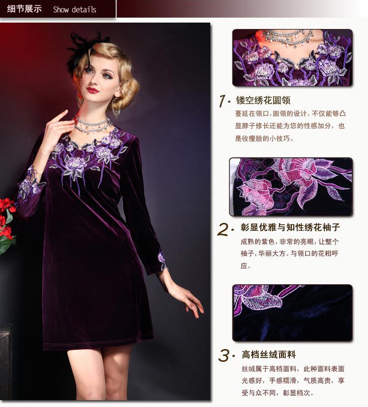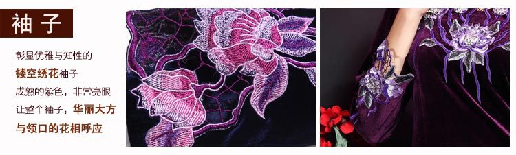 秋季冬款长袖连衣裙中老年气质加大码黑色金丝绒重工刺绣花#2223