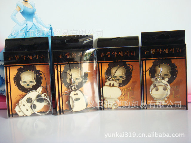 独立包装!木质卡通森林动物幽灵钥匙圈钥匙扣批发 森林动物挂件