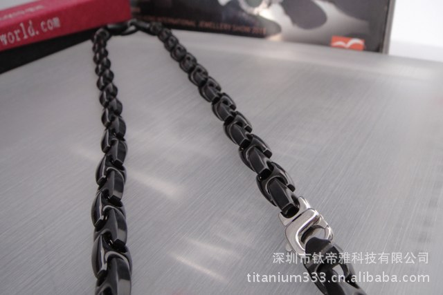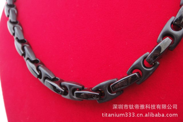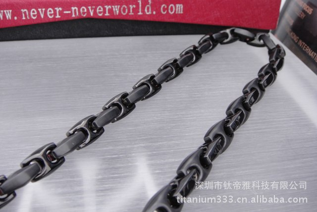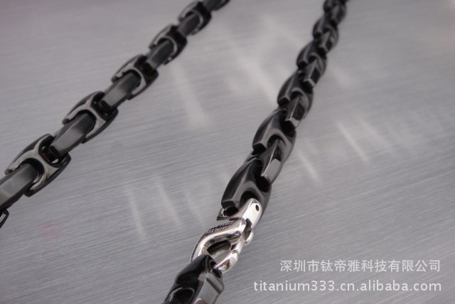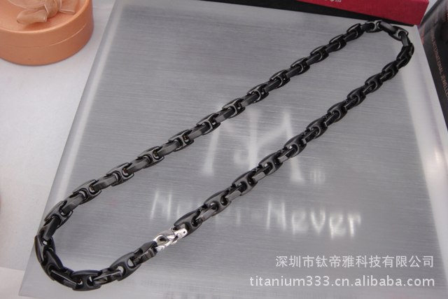 钛厂家供应纯钛立体H-LinK黑钢项链钛钢项链钛帝雅生产厂家钢项链