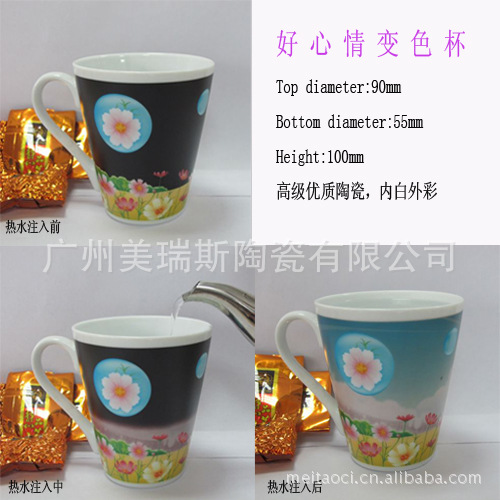 美瑞斯供应锥形陶瓷变色杯,个性创意变色杯批发订做,可印LOGO