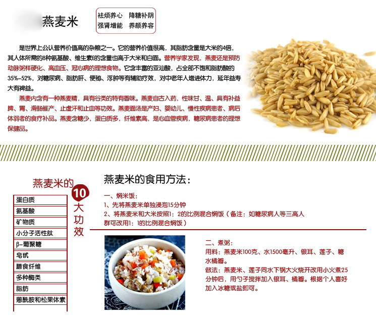 东北杂粮/有机杂粮/有机燕麦米/真空包装500g/普康热品专供