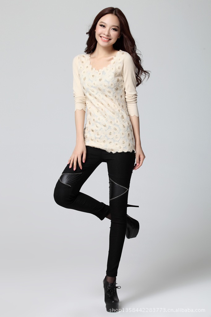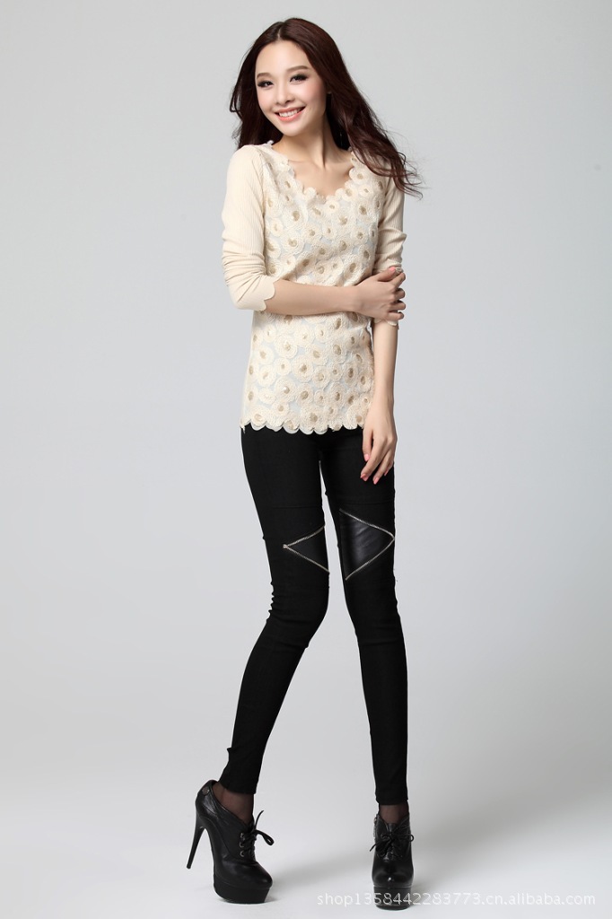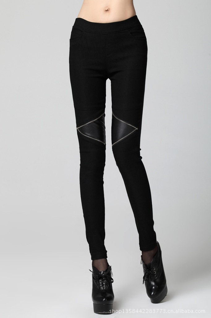 岁末底价清仓 韩版时尚拼接修身靴裤 松紧带小脚裤打底裤9611