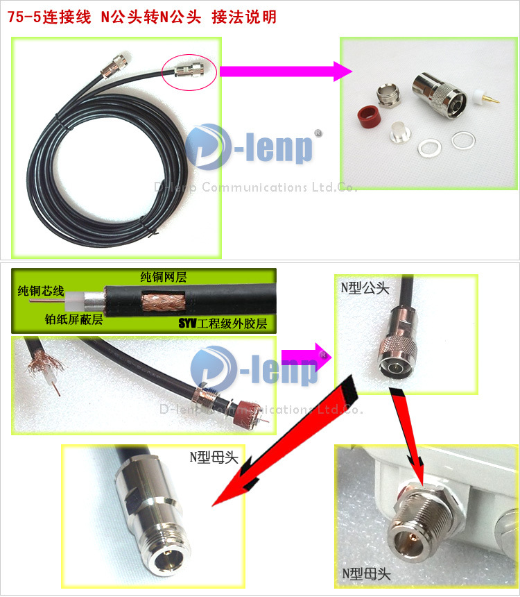 厂家直供 天线连接线 75-5纯铜 1米N公转N公头 适用手机UV通讯