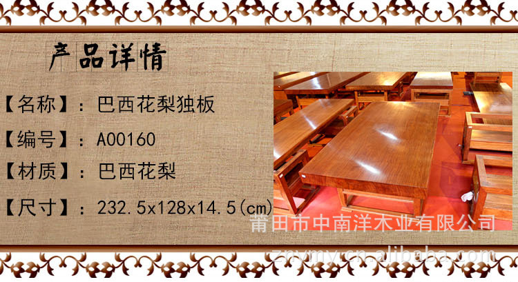 吾家王府 巴花大板桌实木家具红木原木大板 餐桌会议桌画案A00160