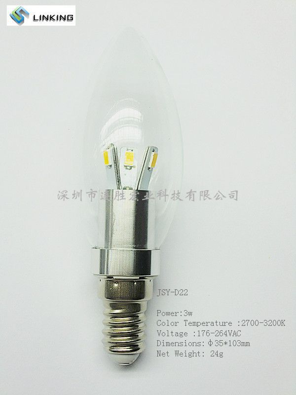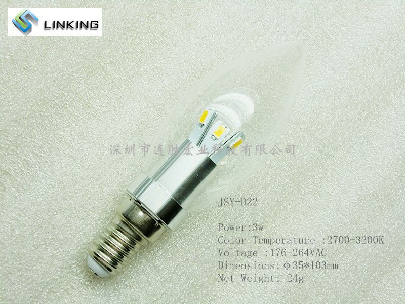 美凌水晶灯led灯泡节能蜡烛灯拉尾灯泡 小螺口E14尖泡光源超亮