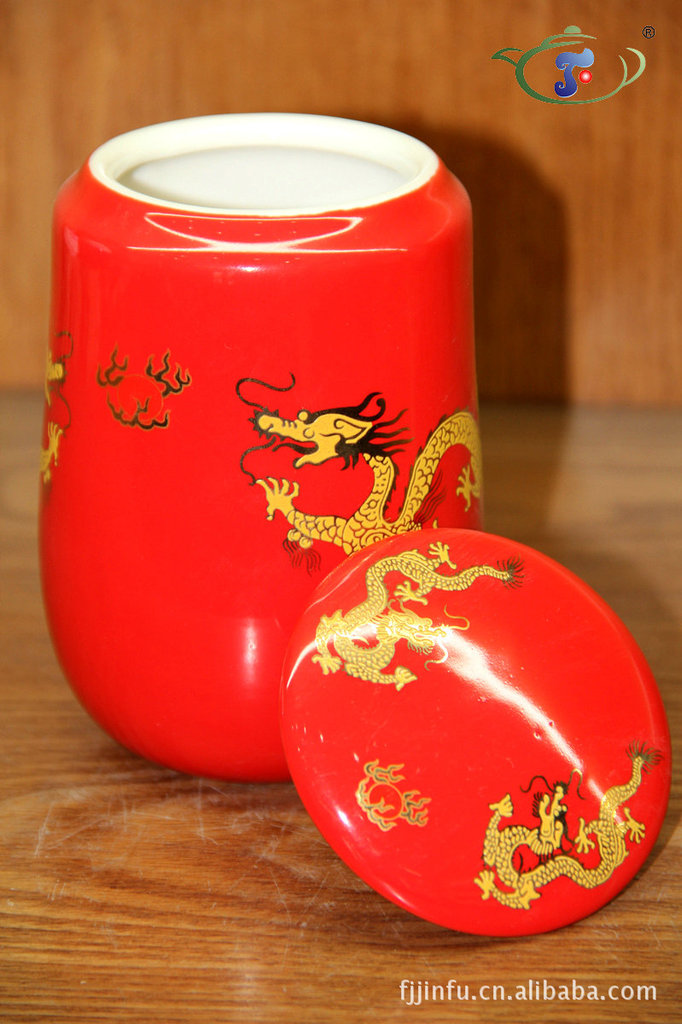 茶叶罐批发 红色陶瓷双龙茶叶罐 纯锡盖茶叶罐 陶瓷罐