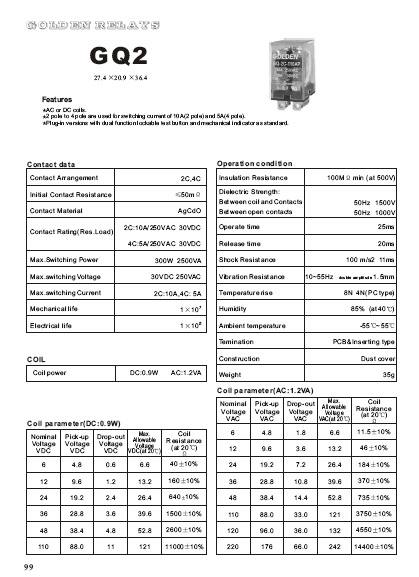 高登 GQ-2 SME JQX-13F 通用功率继电器 汽车继电器 继电器
