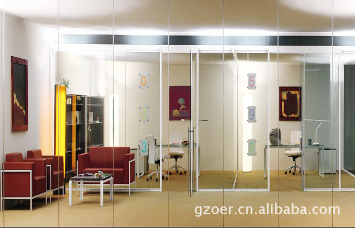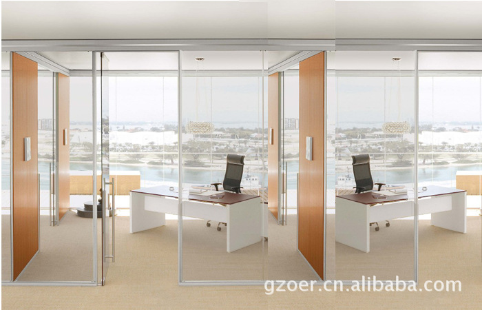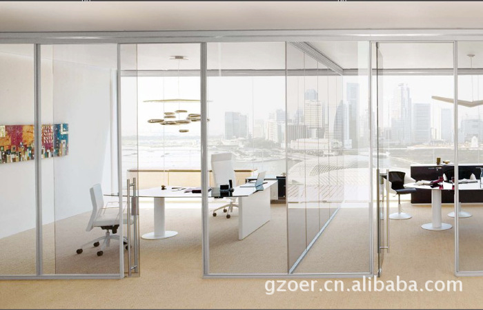 西安办公室木门隔断墙铝合金型材 透明双层钢化玻璃内置百叶窗