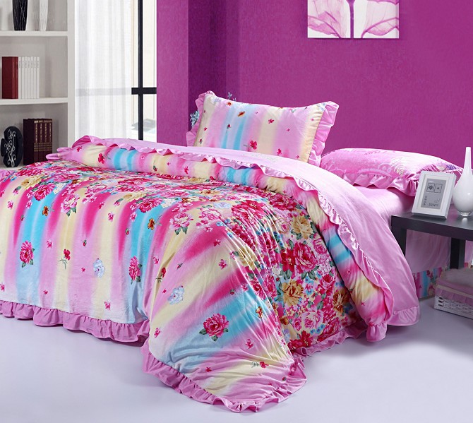 厂家直销 韩式天鹅绒活性印花四件套 加厚保暖