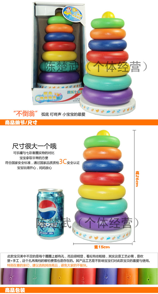 经典幼教益智玩具 七彩套圈 音乐七彩虹 不倒层层叠 不倒翁