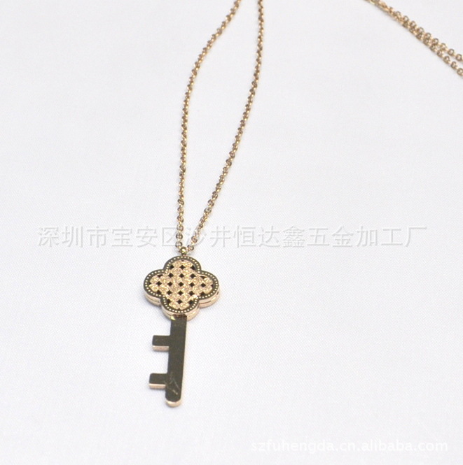 钛钢项链 不锈钢饰品批发 饰品厂家 韩式项链 热销四叶草钥匙项链