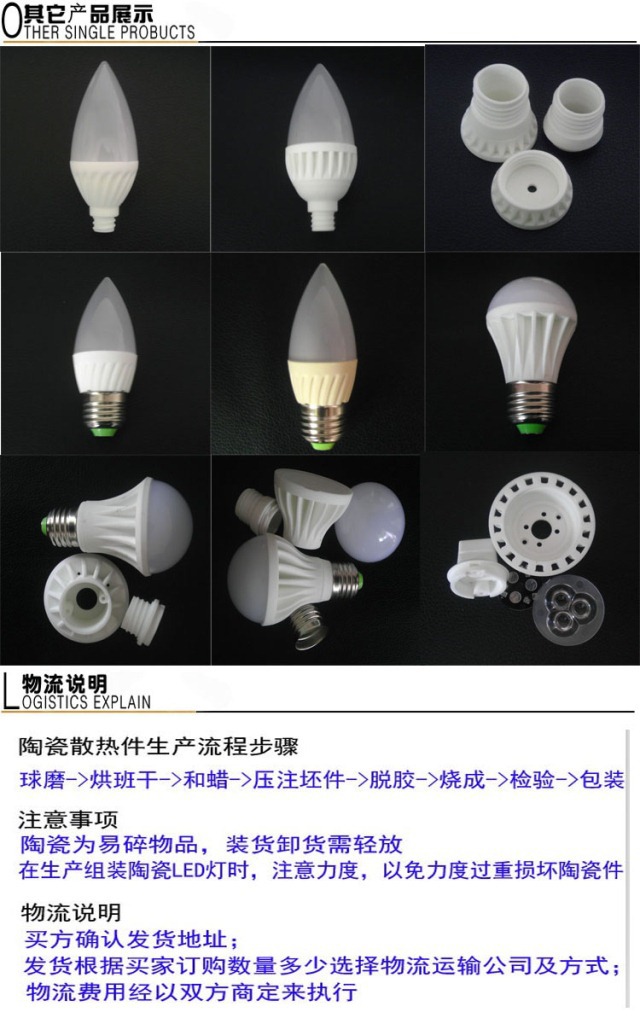 深圳厂家直供展嘉3瓦陶瓷LED球泡灯散热件 陶瓷灯杯 陶瓷灯配件