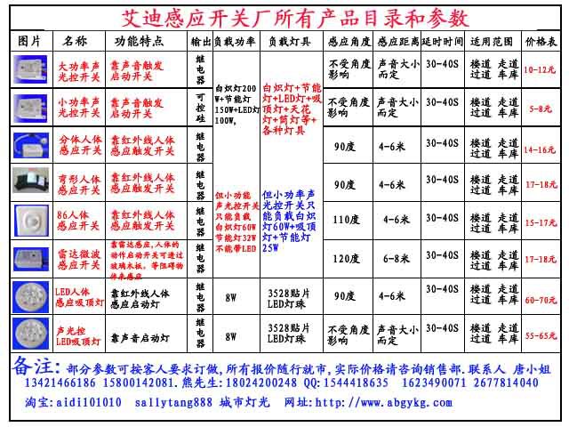 中国口牌感应开关 声光控开关 雷达开关批发厂价直销