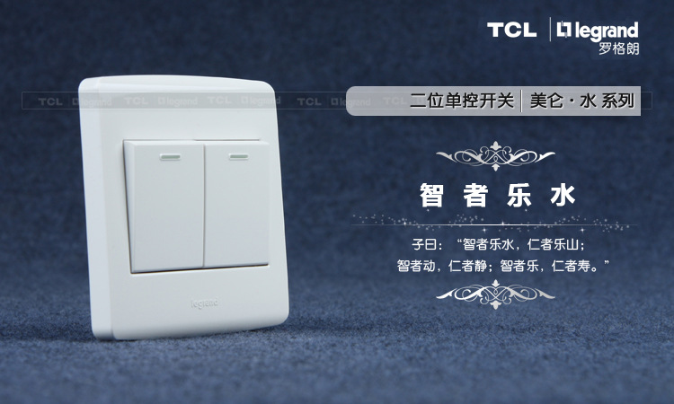 TCL罗格朗开关插座美仑水系列 二开单控带荧光