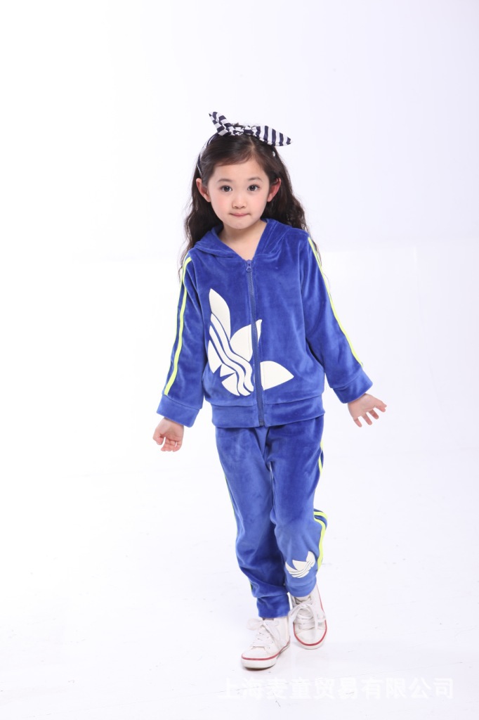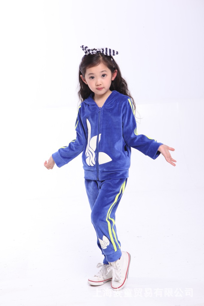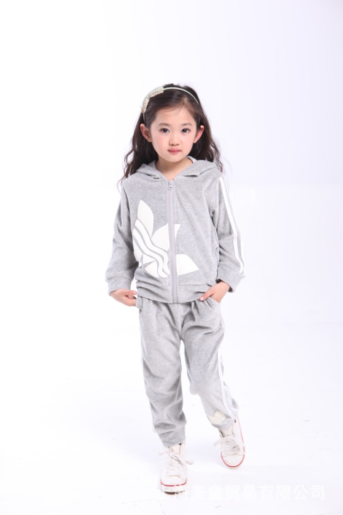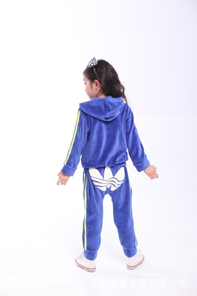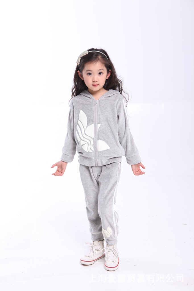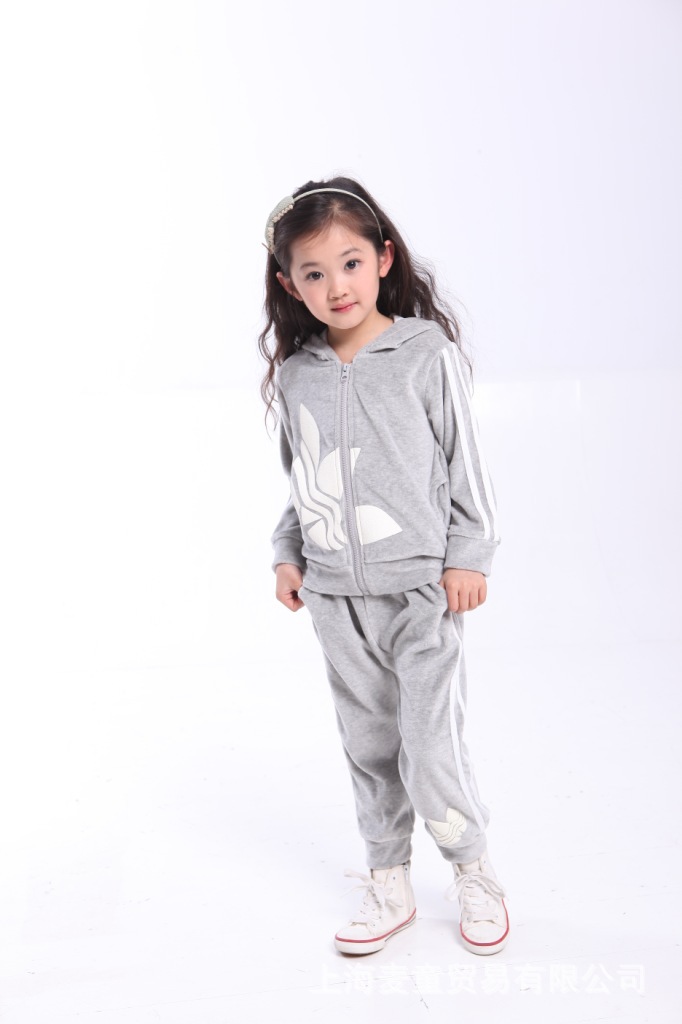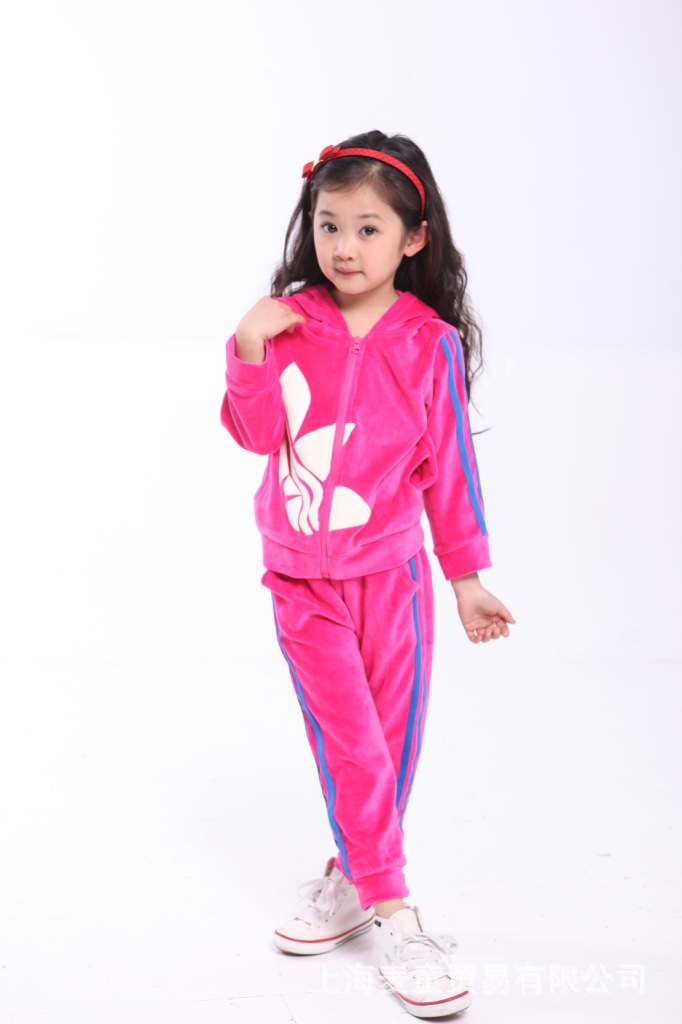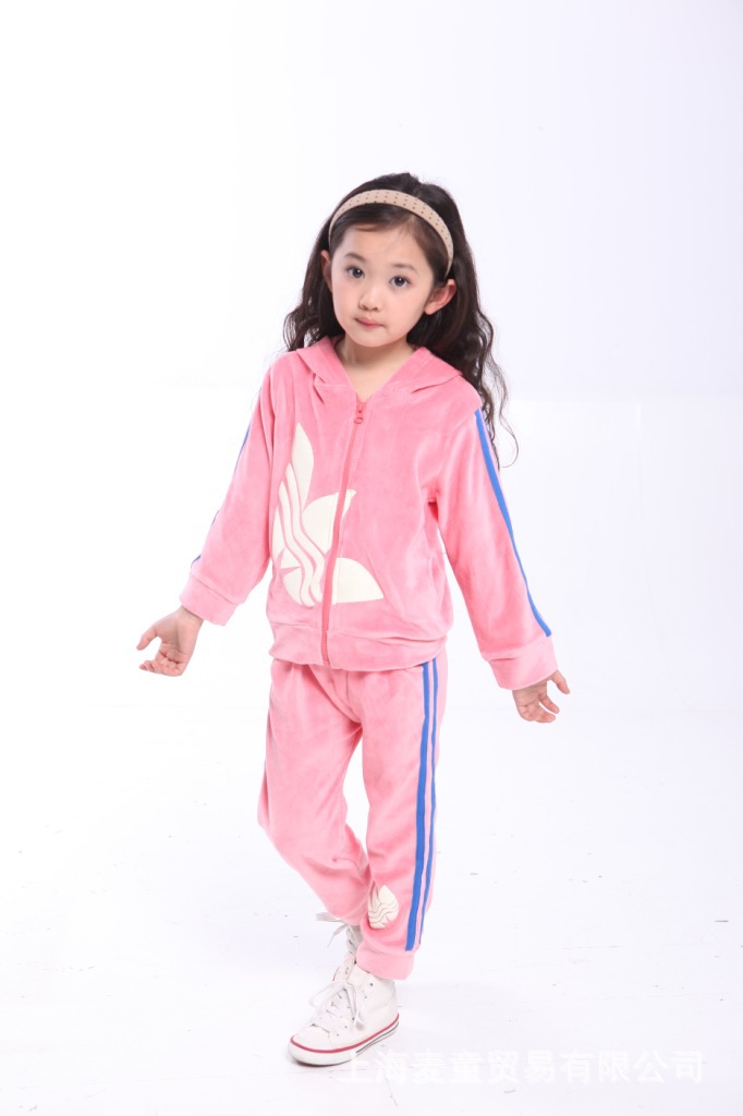 童童 三叶草图女童套装 天鹅绒女童套装 织里品牌女童装批发