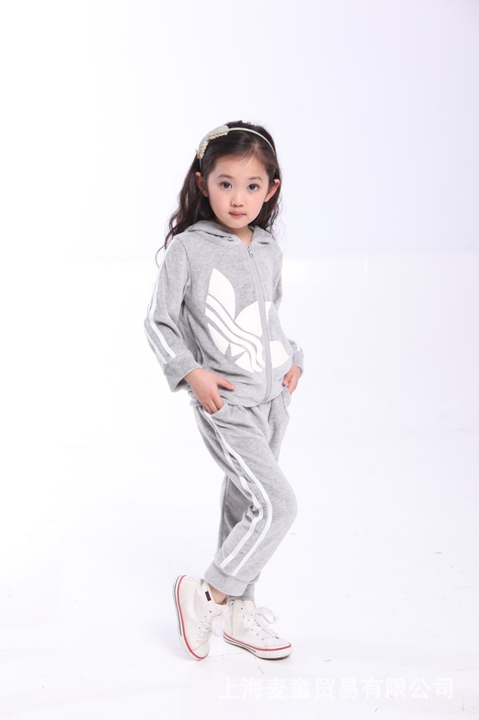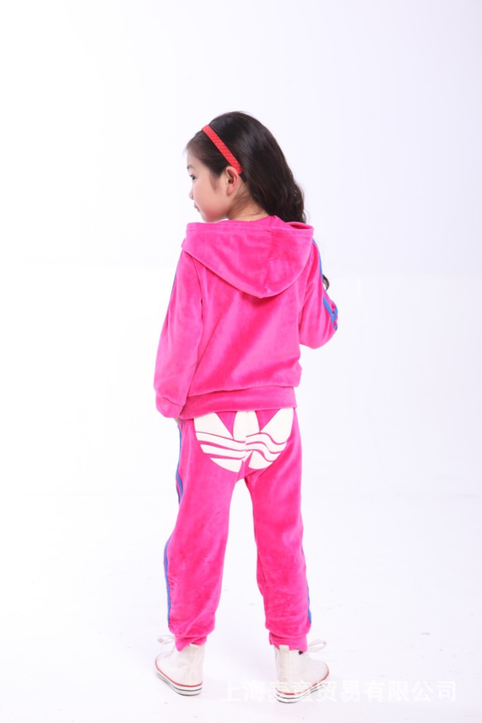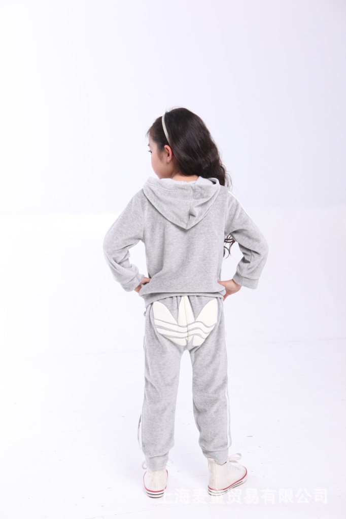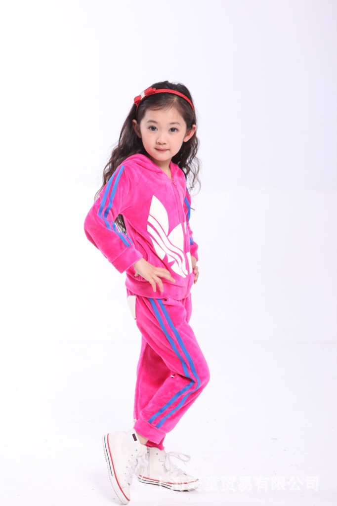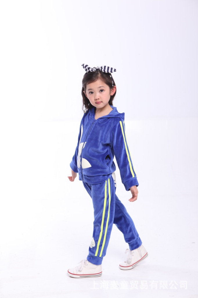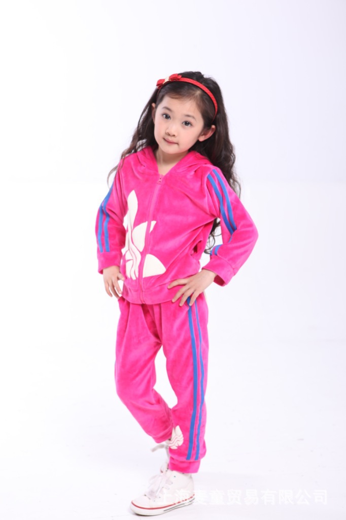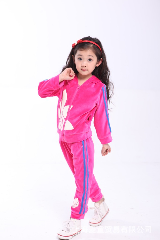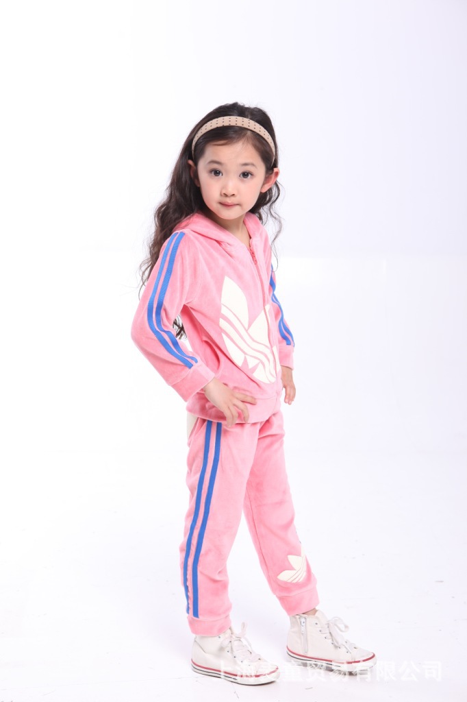 童童 三叶草图女童套装 天鹅绒女童套装 织里品牌女童装批发