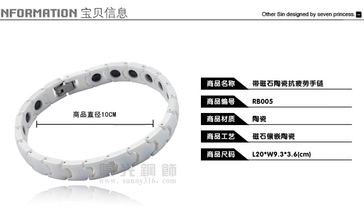 厂家直销高档陶瓷手链 抗疲劳健康手链 情侣陶瓷手链批发RB005