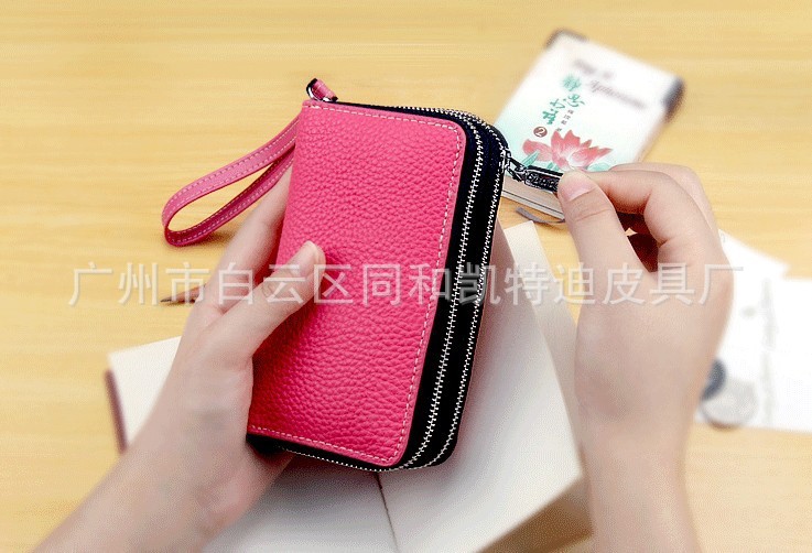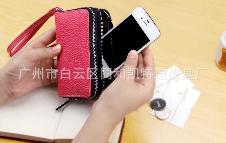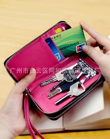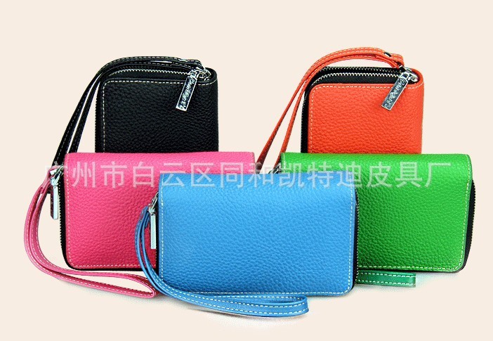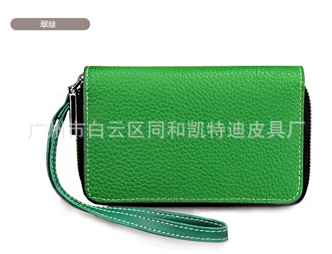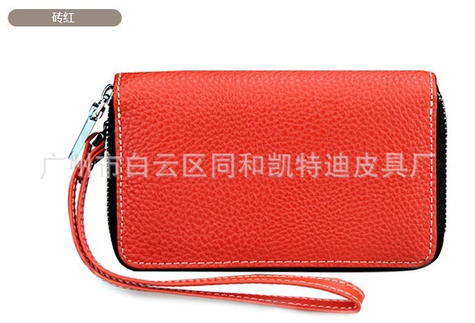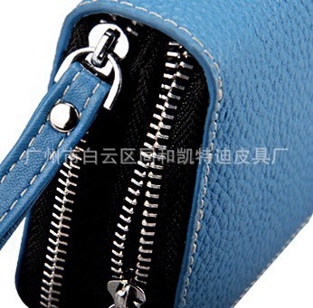 女士双拉链钥匙包 真皮多功能卡包手机包钱包 荔枝纹手拿包批发
