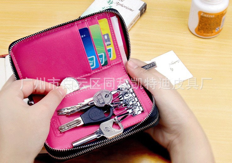 双层拉链钥匙包牛皮实用钱包随挂车用锁匙包