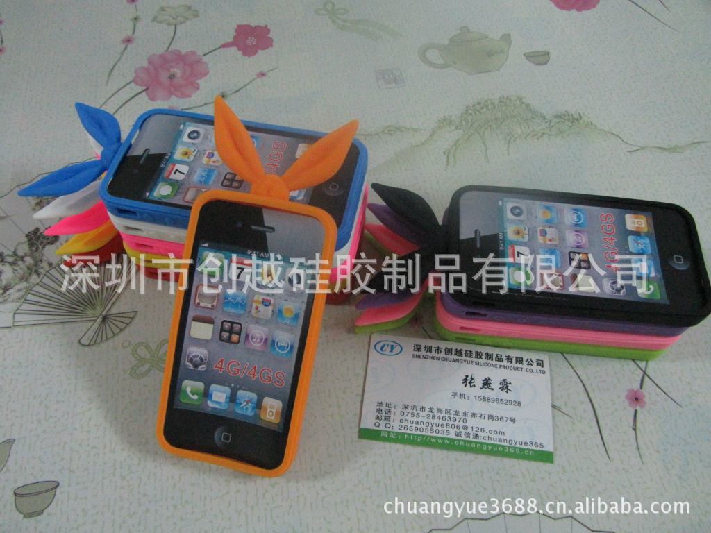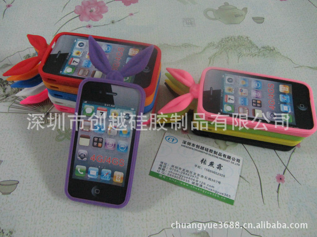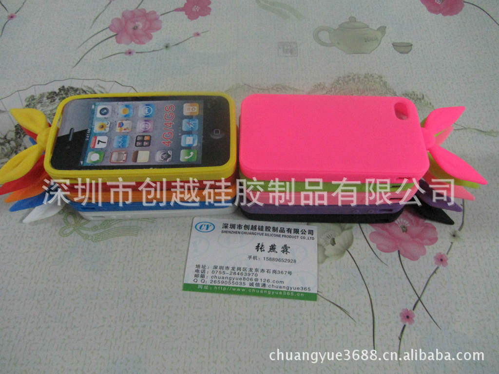 厂家直销供应新款蝴蝶结剪刀状日韩风格iphone4/4s硅胶手机保护套