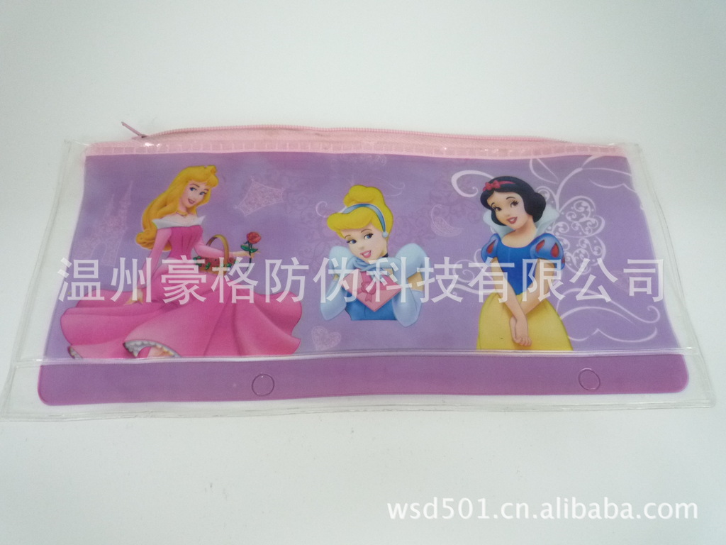 厂家供应公主卡通图案系列彩色PVC笔袋、迪士尼环保PVC笔袋