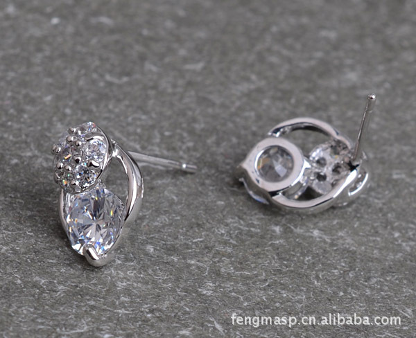 闪耀锆石耳钉 镶钻耳环 高档小耳钉批发