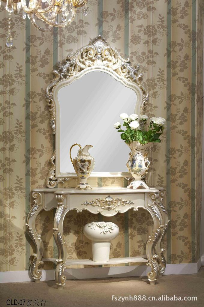 欧式古典客厅家具 欧式茶几 玄关 花架 欧式米黄色真皮沙发905