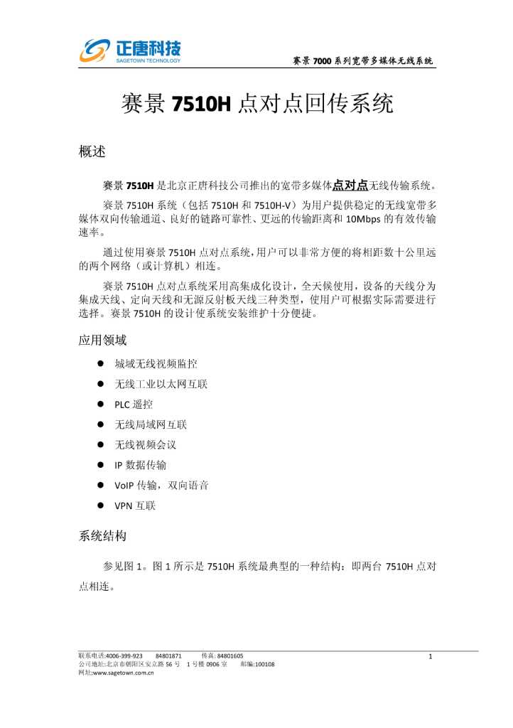 点对点回传系统 赛景7510H