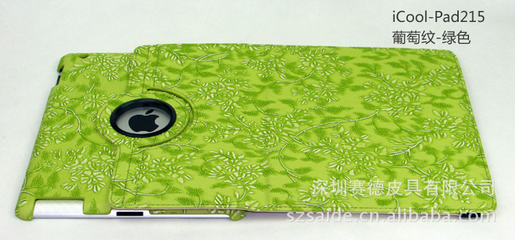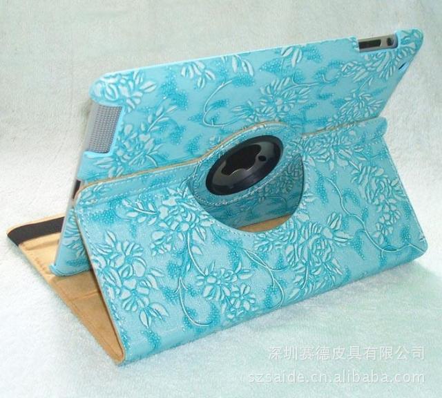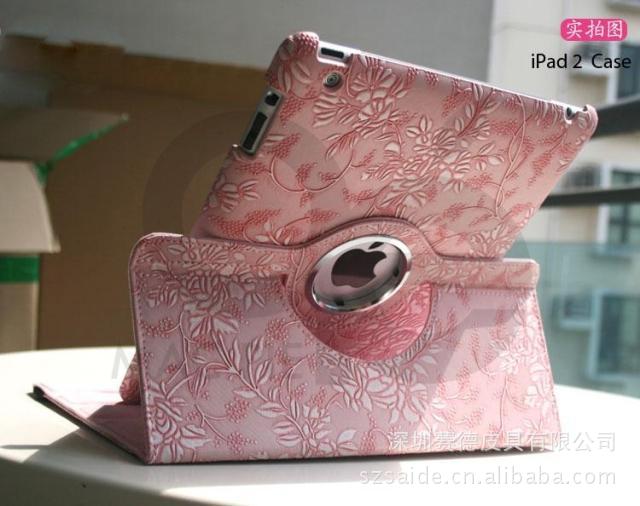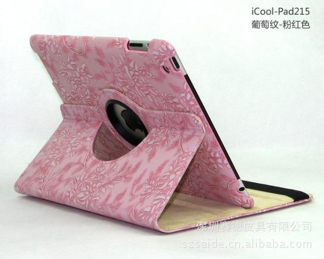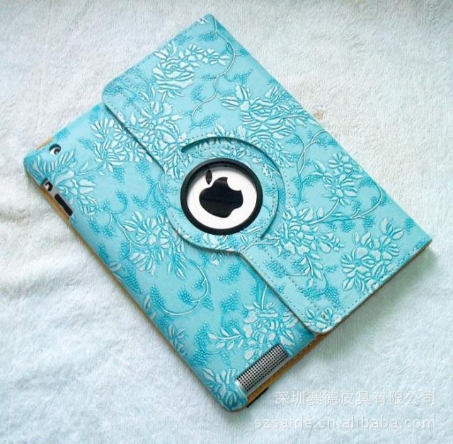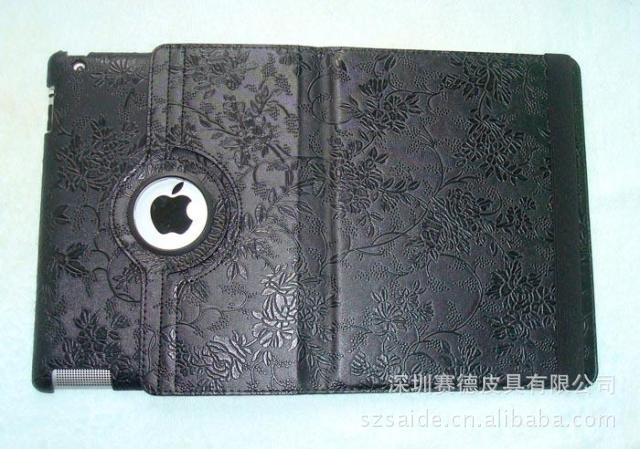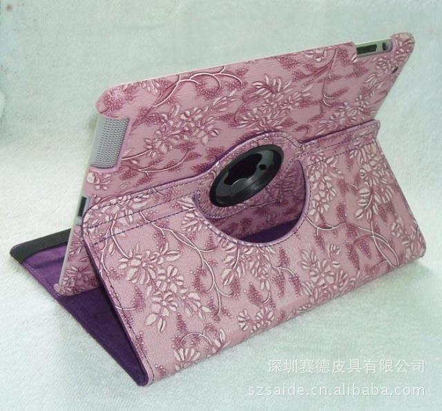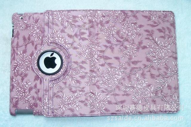 工厂直销 ipad3旋转皮套 时尚花藤休眠皮套