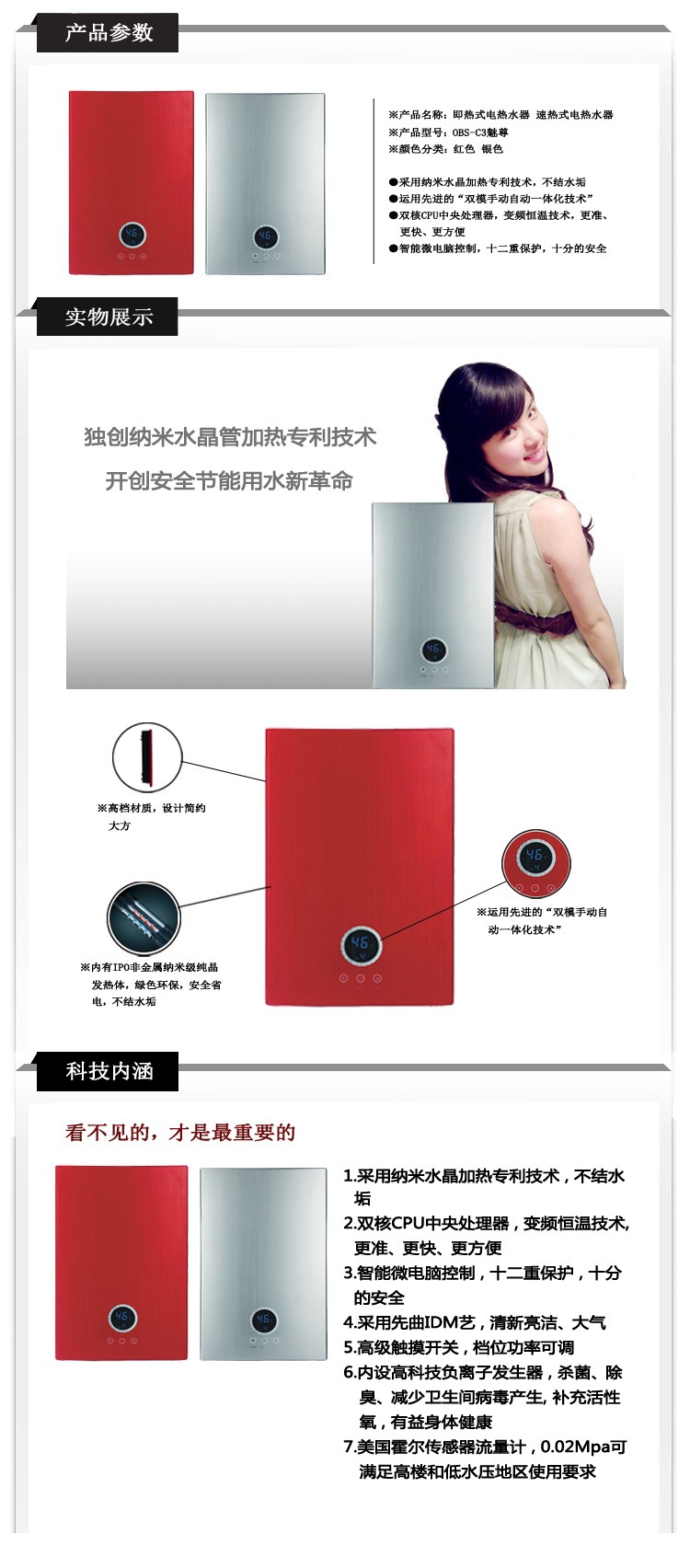速腾100 即热式热水器 速热 电热 快热安全节能 3秒洗澡C3