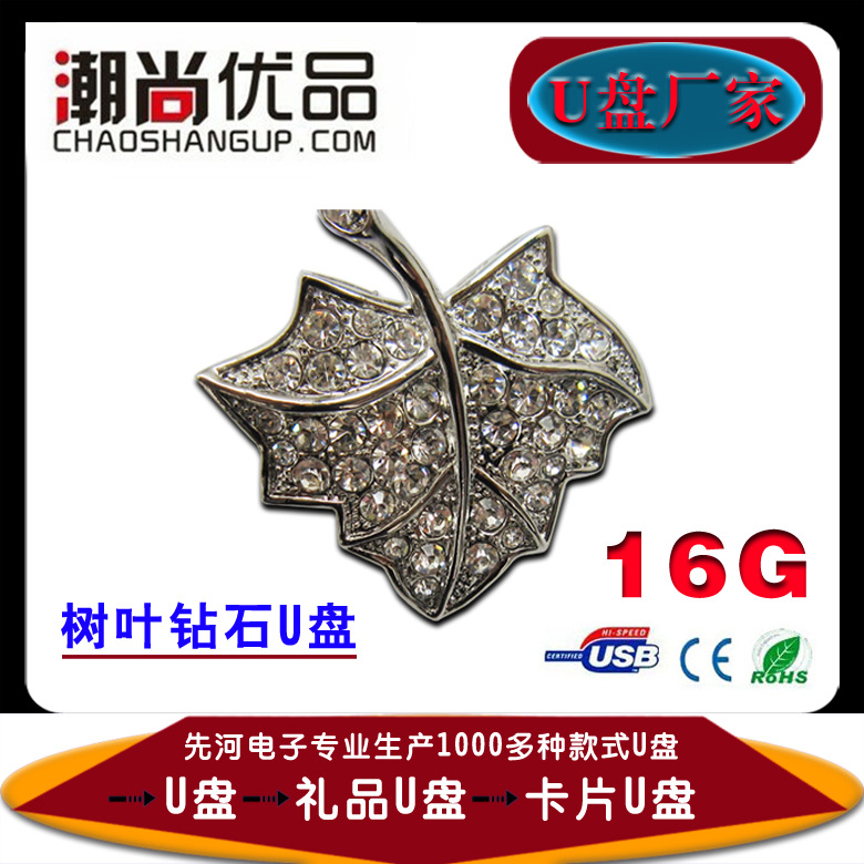 U盘厂家供应潮尙优品 水晶树叶钻石U盘 16G