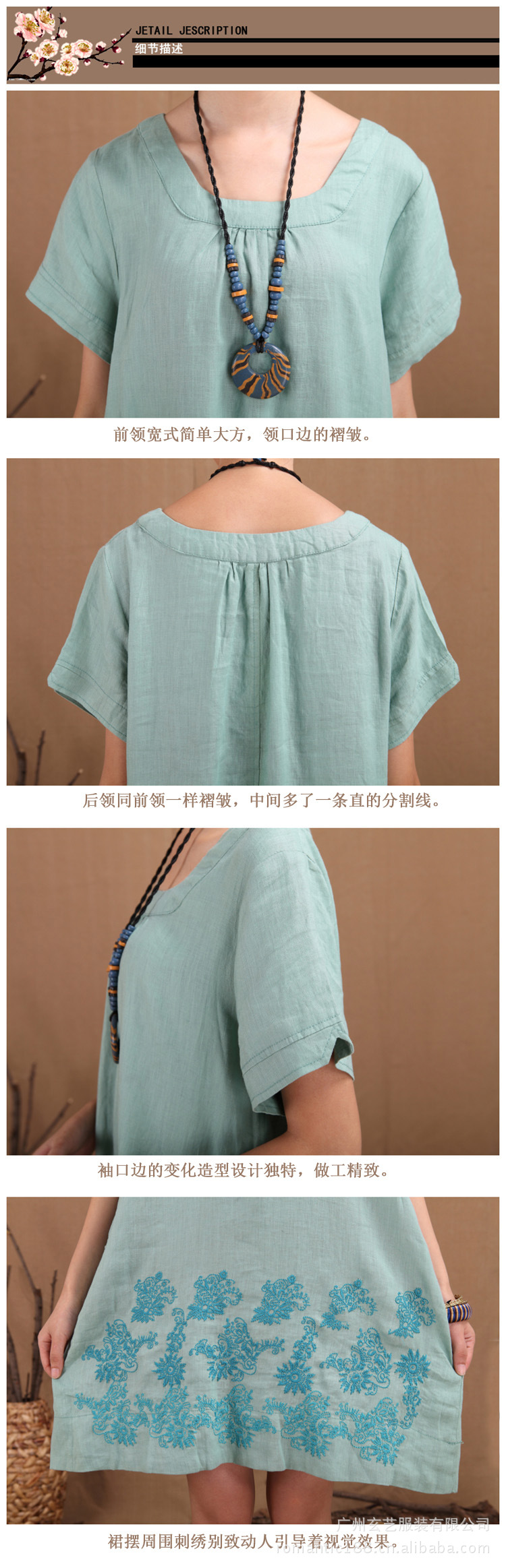 2012女夏装新款纯色方领连衣裙纯亚麻 休闲时尚女裙A12-014