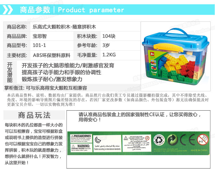 乐高式积木 104块桶装拼装玩具 塑料拼插DIY益智积木 兼容乐高