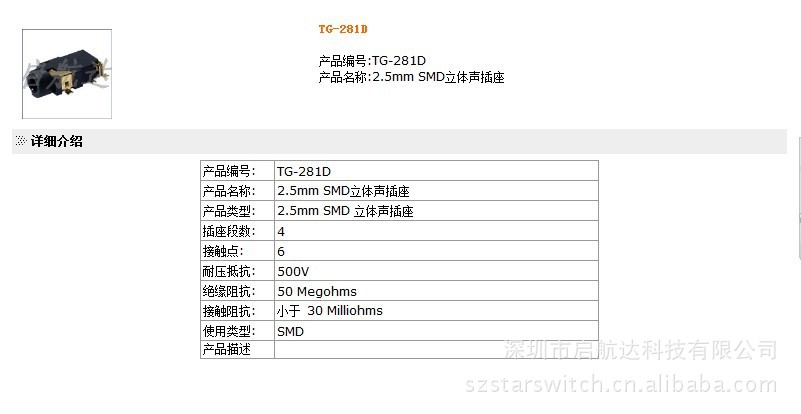 TG-281D 2.5mmSMD立体声耳机插座耳机插口耳机接口 贴片式