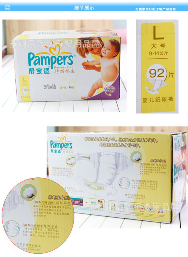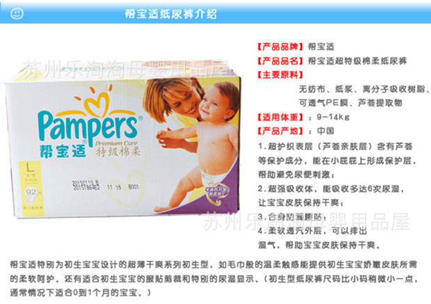 帮宝适特级棉柔白金帮纸尿裤L92片L46片*2包